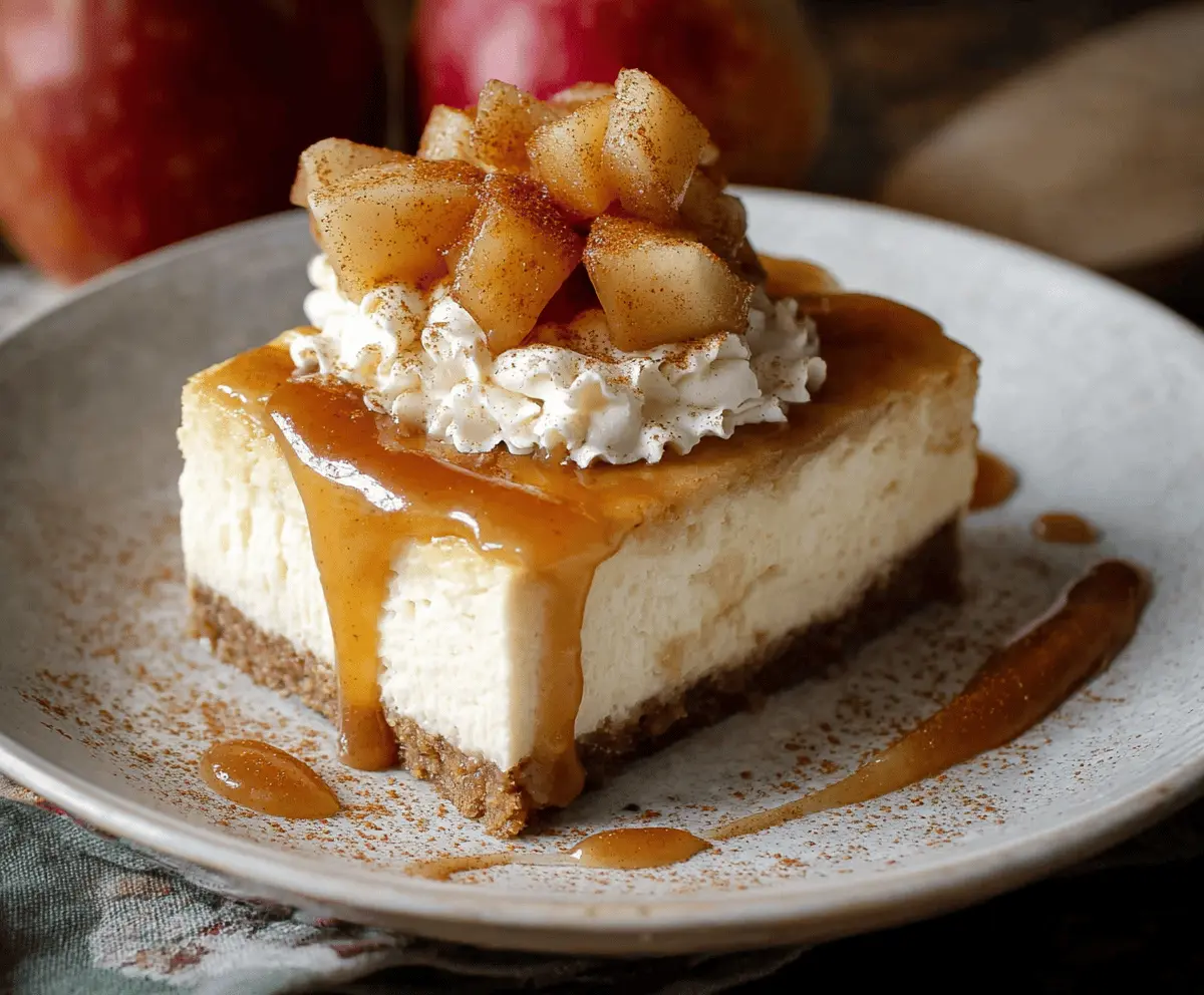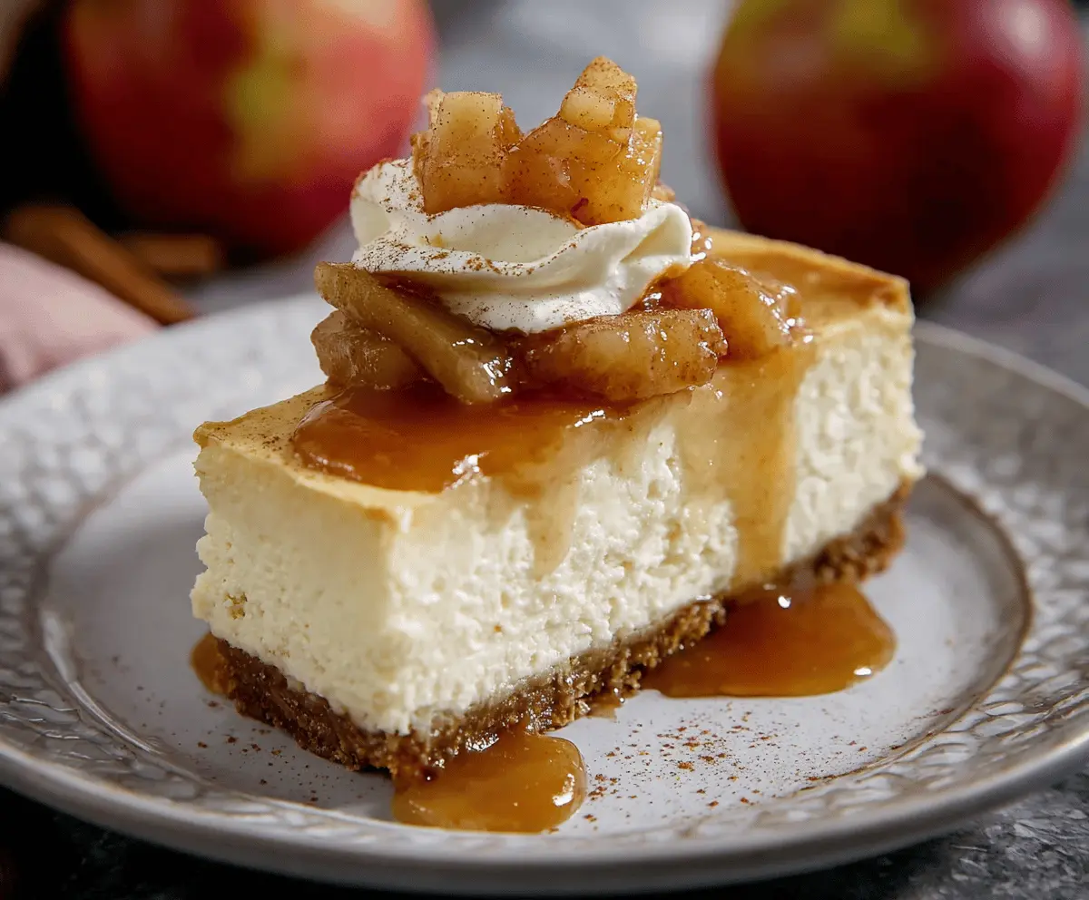 Enjoy your deliciously creamy Apple Cider Cheesecake with its warm, spiced apple topping—perfect for cozy gatherings or a sweet treat anytime!