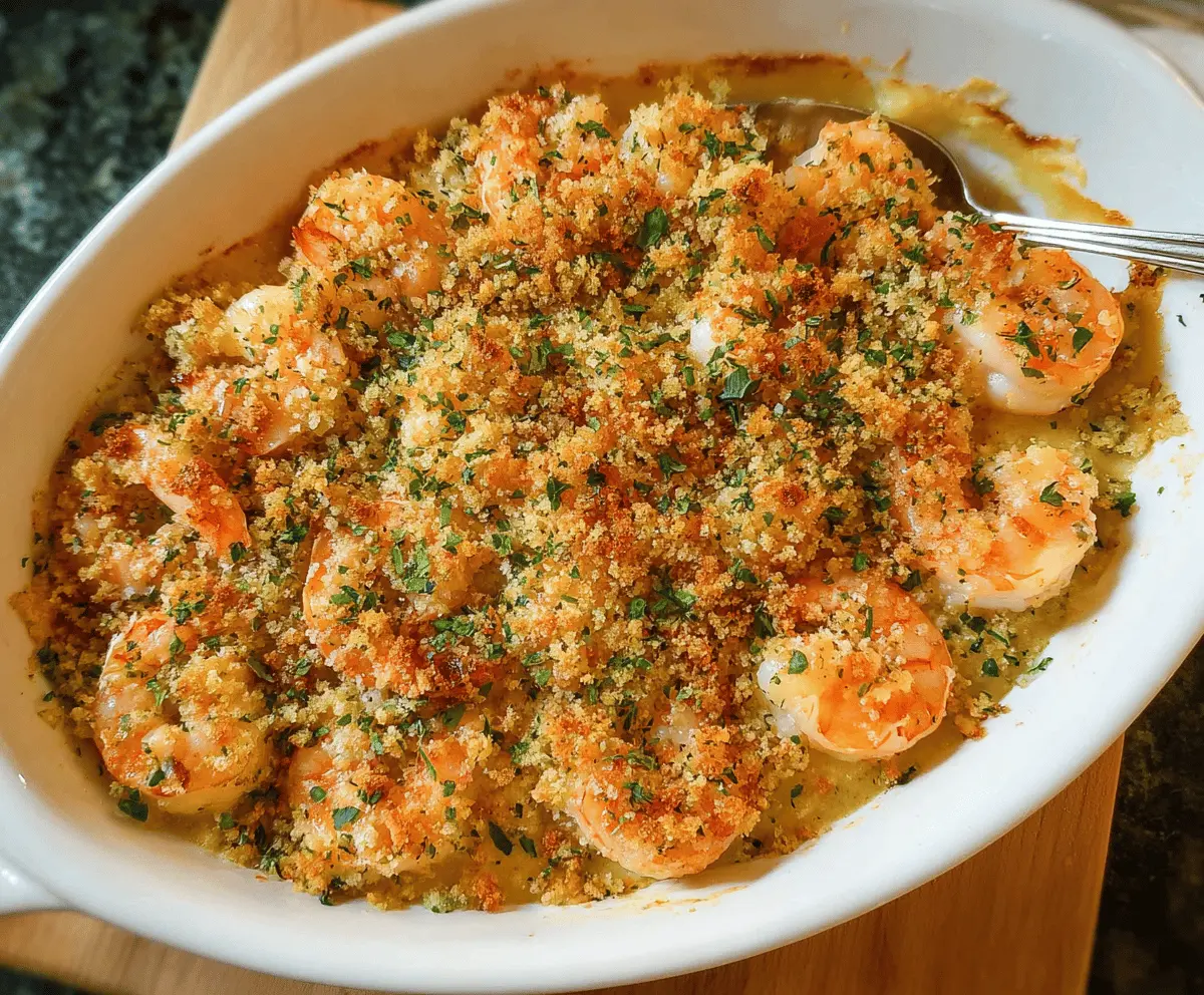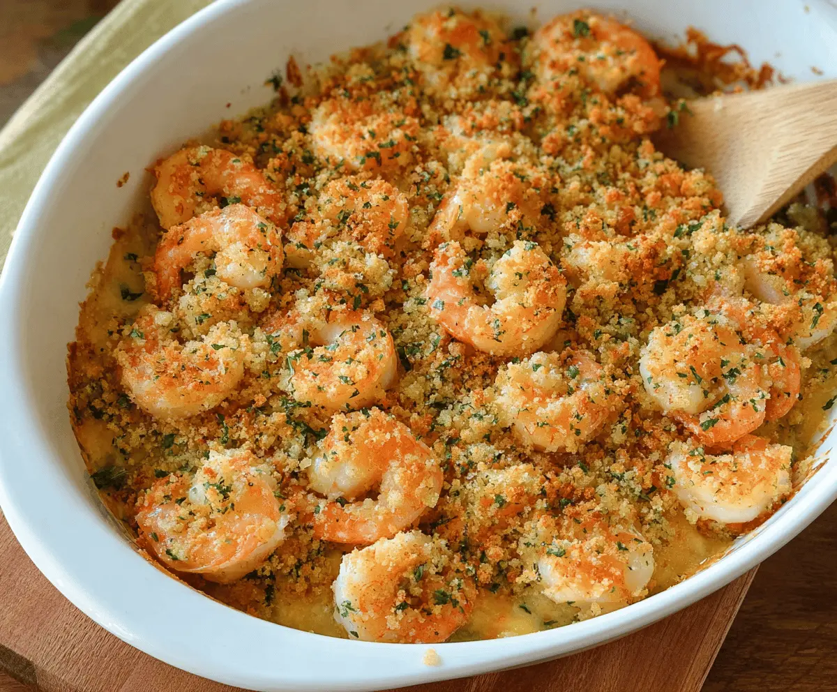 Baked Shrimp Casserole with Buttery Crumb Topping is a wonderful mix of tender shrimp, creamy sauce, and a crunchy, buttery topping that gives every bite a satisfying texture. The golden crumb crust adds a perfect contrast to the soft, flavorful shrimp underneath, making it a comforting and tasty dish that’s perfect for any occasion.