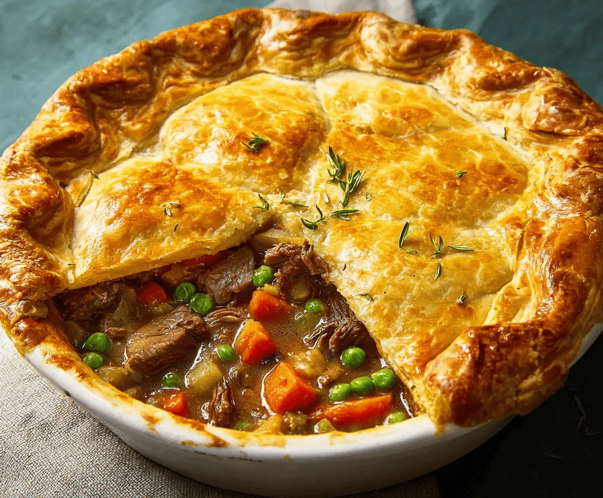 Beef Pot Pie is a classic comfort dish that feels like a warm hug on a plate. It’s all about tender chunks of beef, hearty veggies like carrots and peas, and a rich gravy, all wrapped up under a flaky, buttery crust. The crispy top and soft filling make every bite super satisfying and full of flavor.