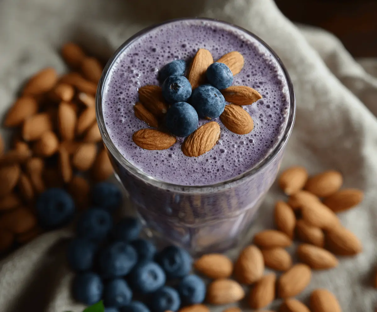 This Blueberry Almond Breakfast Shake is a creamy, nourishing smoothie that tastes like a sweet blueberry almond milkshake. Made with juicy blueberries, almond butter, oats, and a touch of vanilla, it’s packed with wholesome ingredients that fuel your morning and keep you full for hours. The blend is rich, smooth, lightly sweet, and loaded with antioxidants, healthy fats, and plant-based protein.