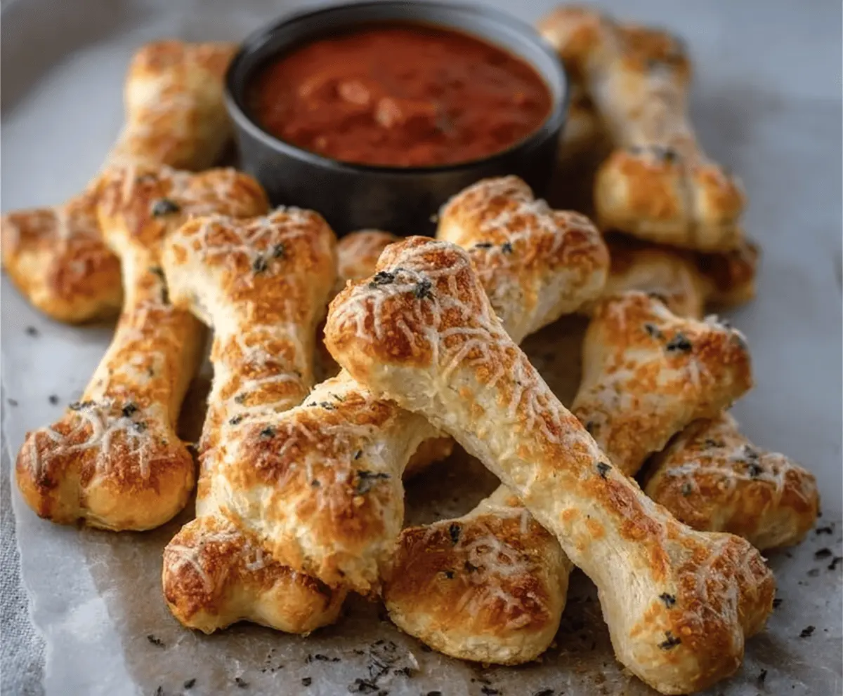 Cheesy Breadstick Bones are a fun and tasty twist on your classic breadstick. Soft, warm dough filled with gooey cheese, shaped like little bones that are perfect for snacking or sharing at a party. The melted cheese inside adds a great flavor and a delightful stretch every time you pull them apart.