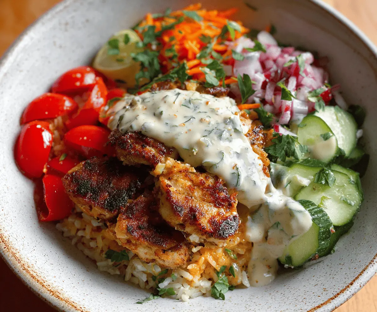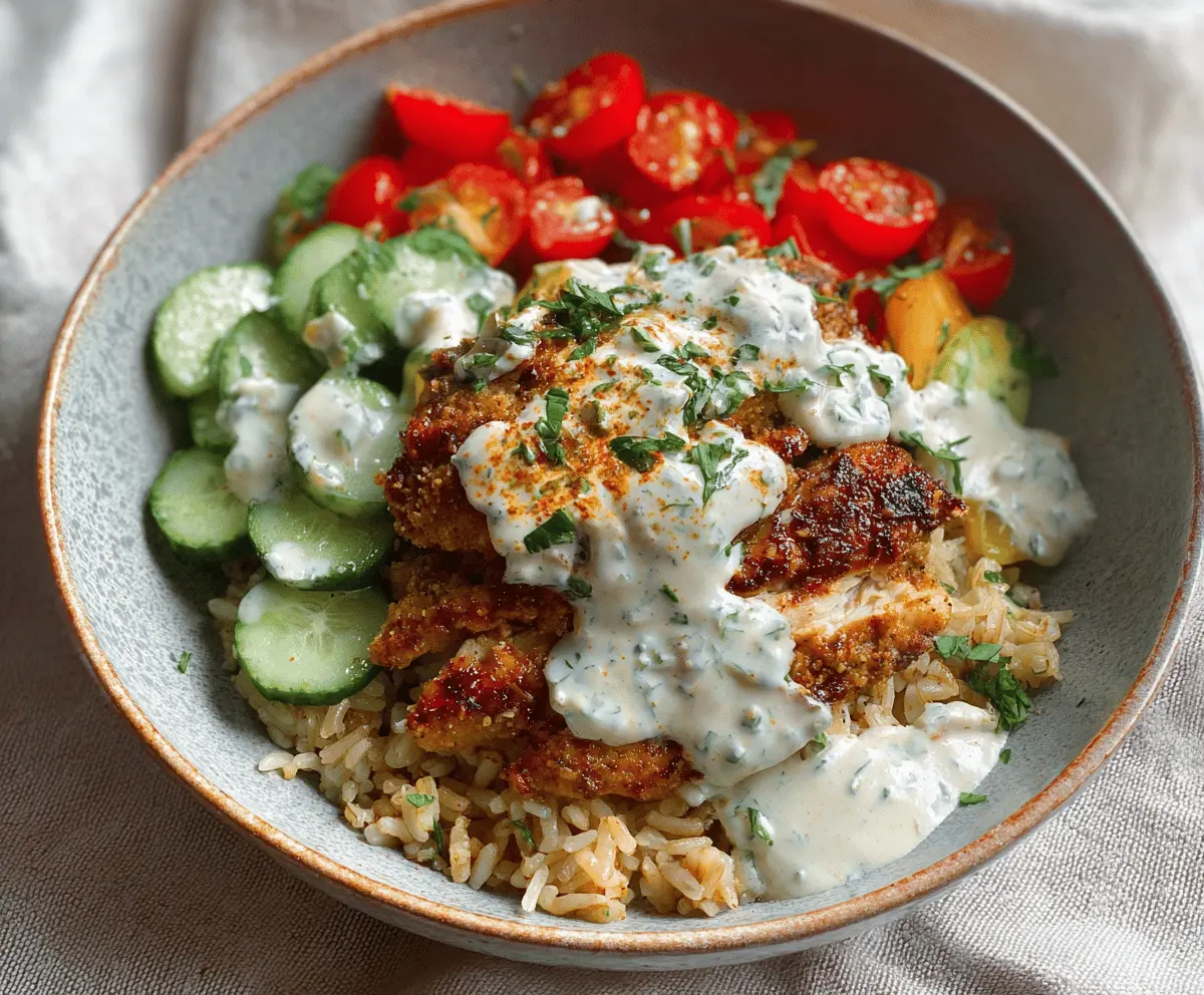 Chicken and Rice Bowls with Creamy Garlic Sauce are a simple and comforting meal that brings together juicy, tender chicken with fluffy rice and a rich, flavorful garlic sauce. The sauce is smooth and creamy, adding a lovely kick without being too strong, making every bite satisfying and cozy.