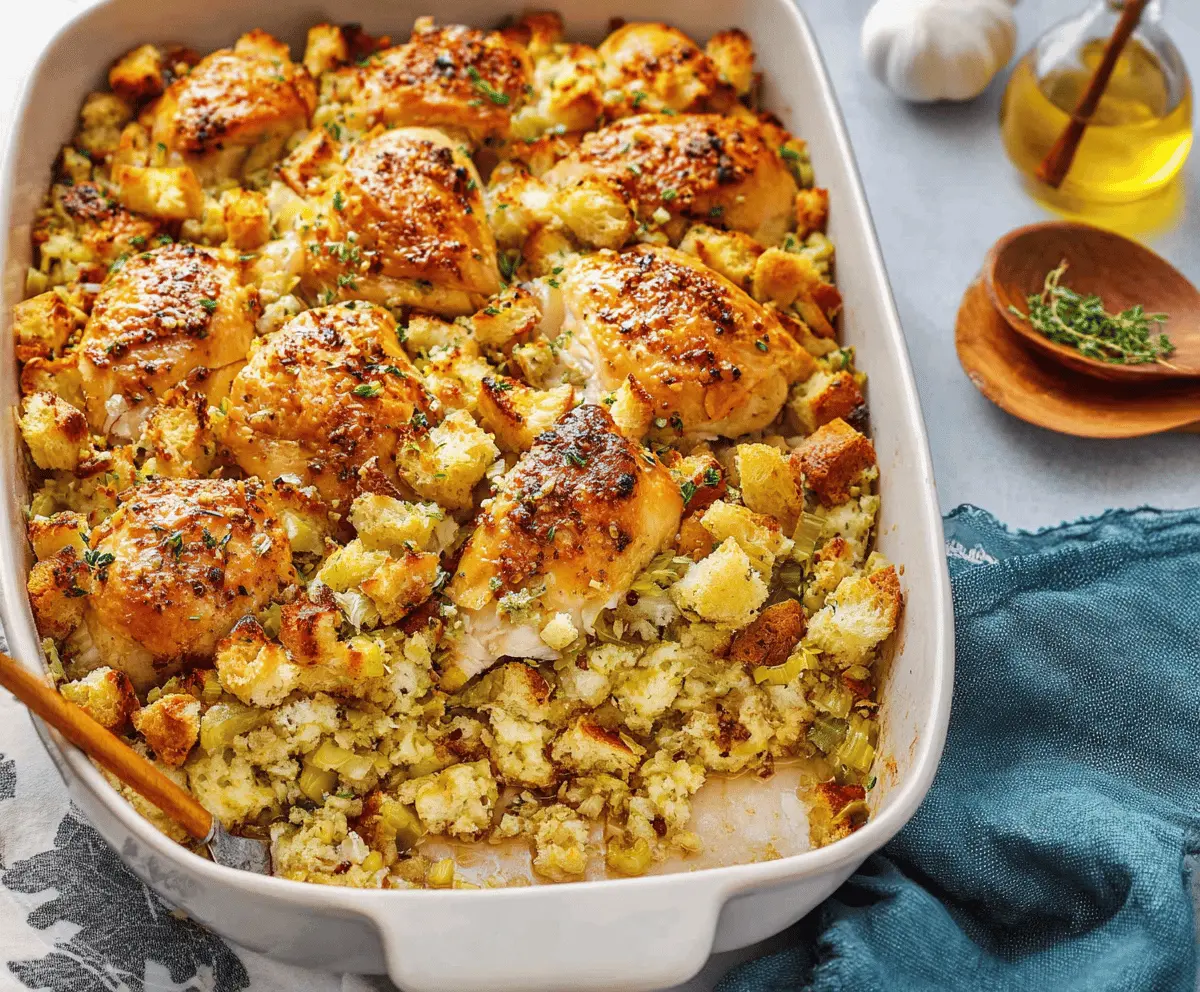 I love making this dish because it’s one of those recipes that feels like a big, cozy hug on a plate. It’s simple to prepare, and everything cooks together, which means you get great flavors mingling as the stuffing soaks up the chicken juices—making every bite extra tasty. I usually switch up the stuffing mix with whatever herbs or veggies I have on hand, so it’s easy to make it your own.