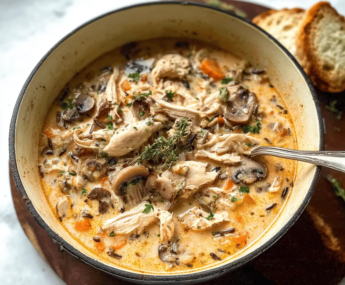 This creamy mushroom chicken and wild rice soup is a cozy, comforting bowl packed with tender chicken, earthy mushrooms, and hearty wild rice. The creamy broth wraps everything together just right, making it a perfect meal for chilly days or when you just want something that feels like a warm hug.
