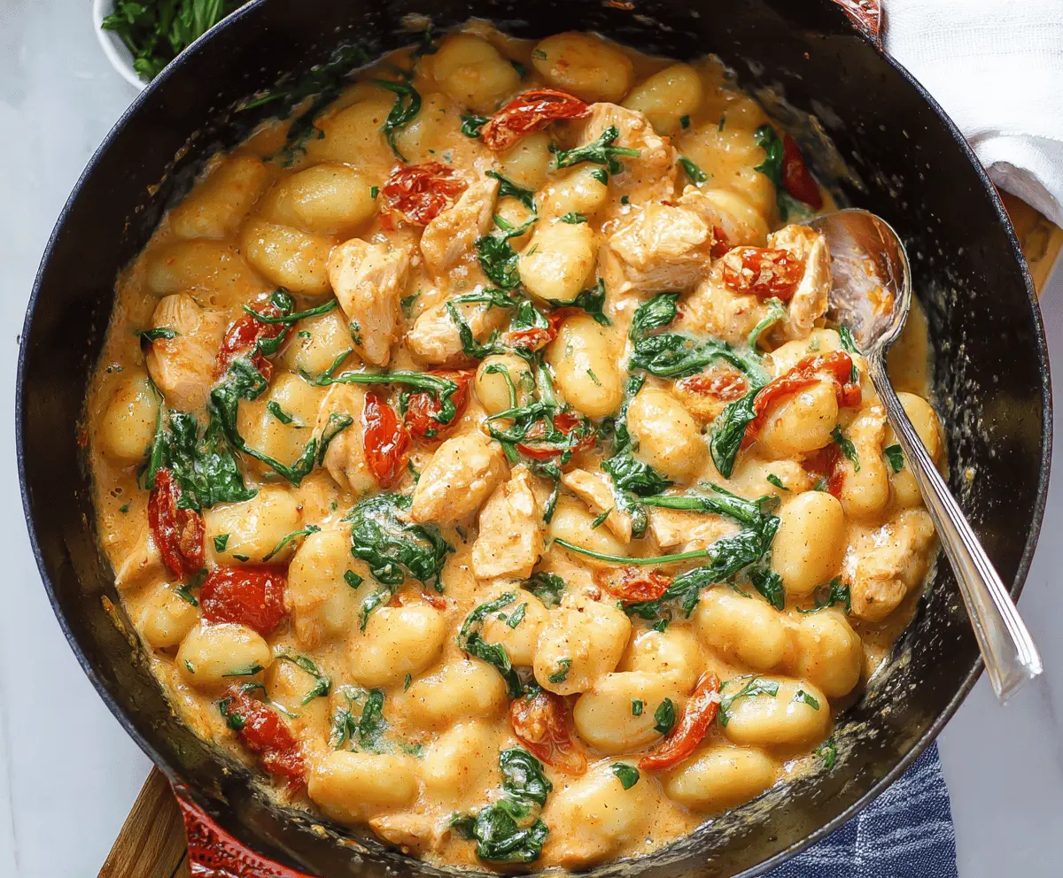 Gnocchi: Potato gnocchi gives a soft, pillowy texture that absorbs the sauce well. If gnocchi is hard to find, small pasta like tortellini or even small dumplings can work as a stand-in.