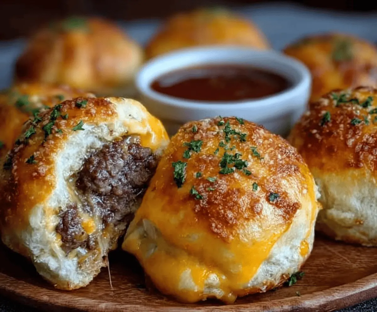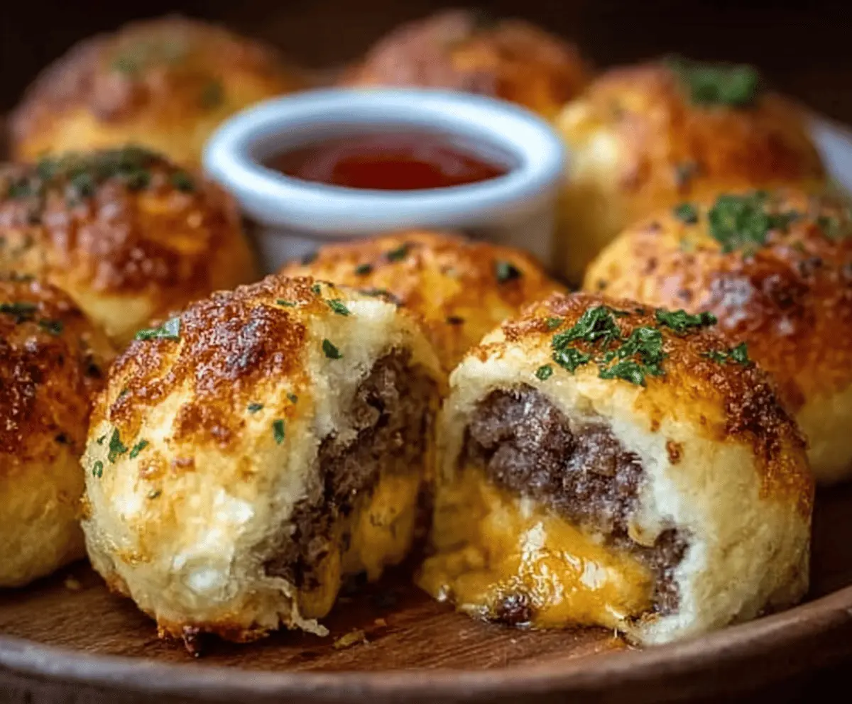 Let your cheeseburger bombs cool for a few minutes. Garnish with fresh parsley if you like, and serve warm with ketchup, mustard, or your favorite dipping sauce. Enjoy every cheesy, garlicky bite!