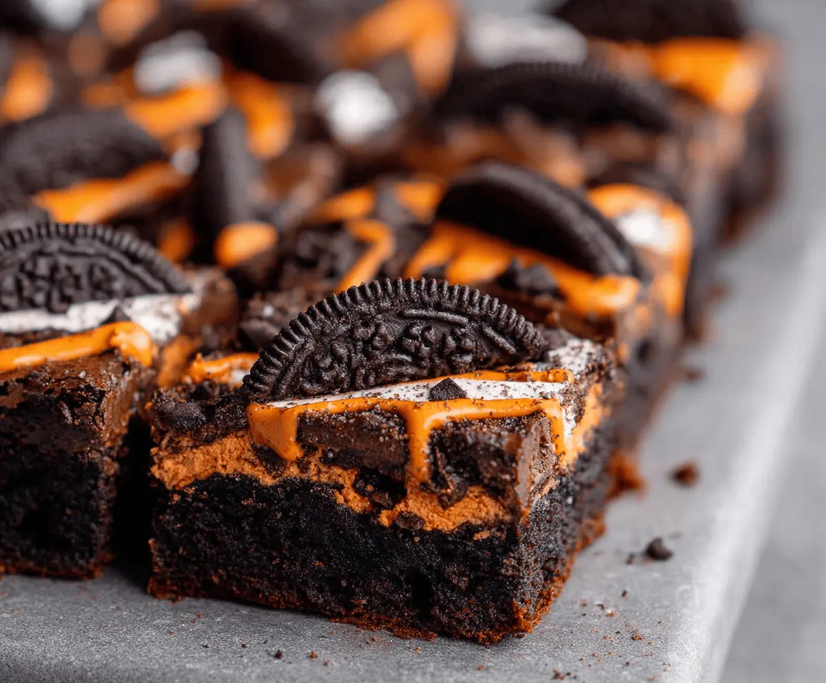 Halloween Oreo Brownies bring together two of the best treats—rich, fudgy chocolate brownies and crunchy Oreo cookies—with a festive twist perfect for spooky celebrations. These brownies are loaded with chunks of Oreos, giving a fun texture and a sweet surprise in every bite. They look great too, topped with Halloween-themed decorations or candy to make your dessert table extra special.
