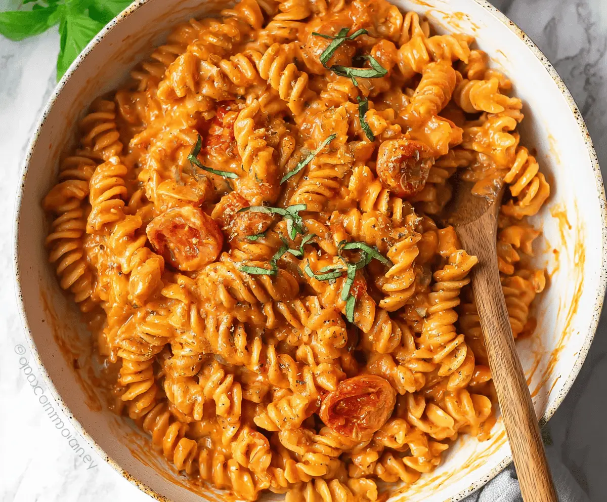 I love making this pasta because it’s easy to throw together with basic ingredients and still tastes like you spent hours in the kitchen. The creaminess comes from blending in a bit of cheese or cream, which balances the brightness of the tomatoes perfectly. I often add a sprinkle of fresh herbs on top to give it a fresh pop of flavor—you can’t go wrong with a little basil or parsley.