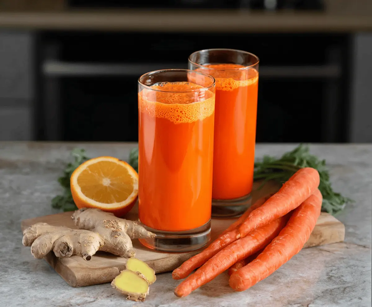 Loaded with vitamin C from fresh oranges and lemon, beta-carotene from carrots, and antioxidant-rich ginger, this homemade juice brings a wellness kick without added sugars or artificial flavors. It’s hydrating, smooth, and easy to sip, whether you’re starting your day, recovering after a workout, or helping your body during seasonal shifts.
