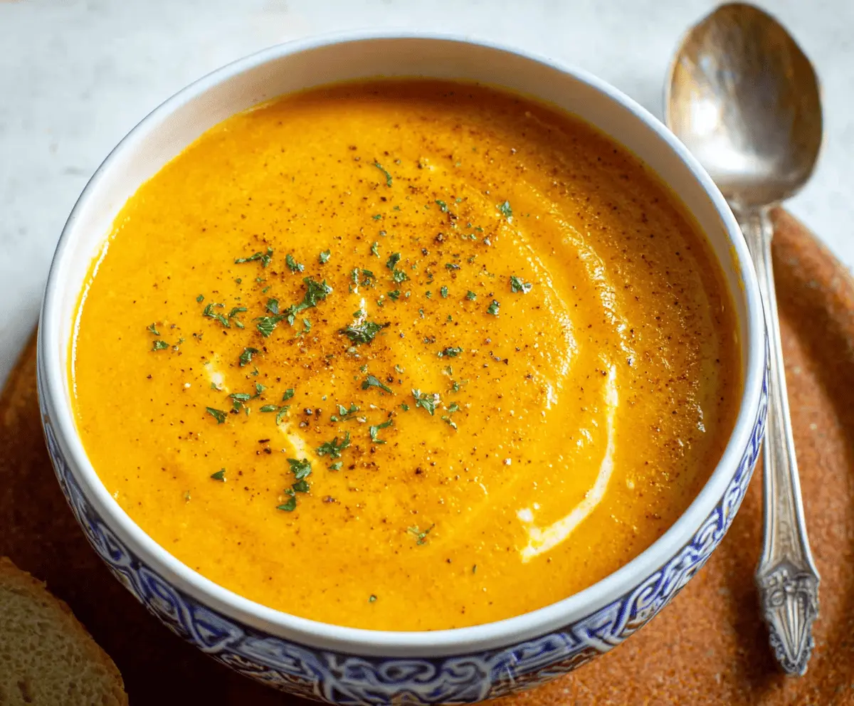 I love making this soup on chilly days because it feels like a cozy hug in a bowl. The ginger gives it a little sparkle, and the spices—like cinnamon or cumin—bring a nice warmth that lingers. Whenever I make it, my kitchen smells amazing, and it always draws compliments from family and friends. A quick tip: roasting the carrots first really brings out their natural sweetness and makes the soup taste even better.
